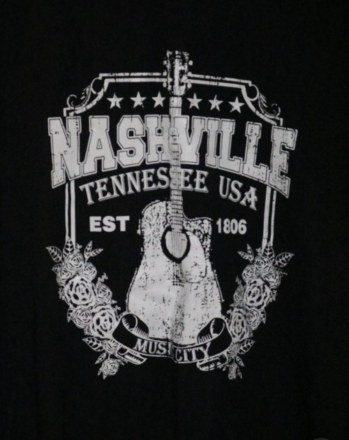 Design: Guitar & roses with “Nashville Tennessee USA – Music City” text