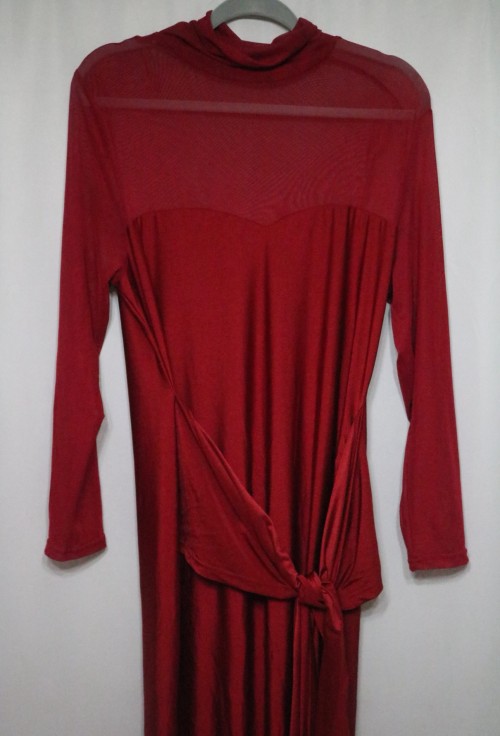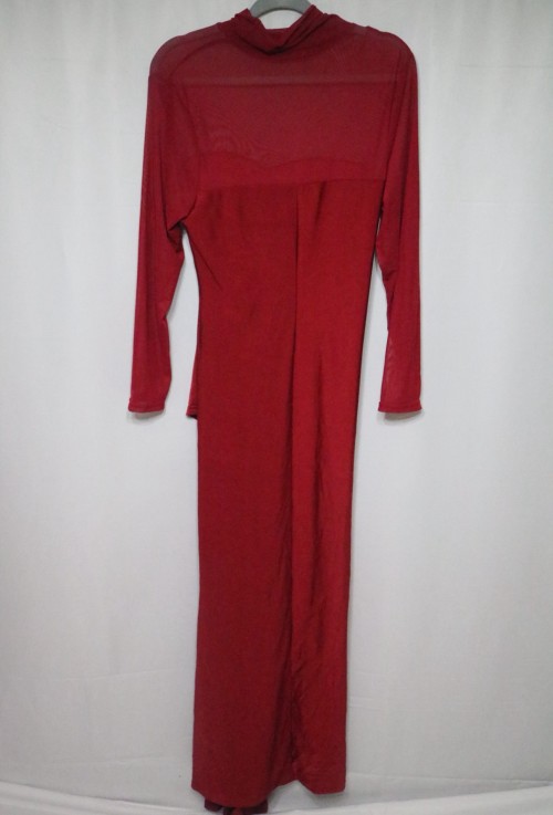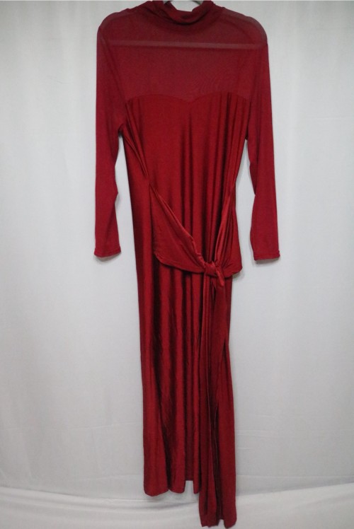 πŸ”₯ Elegant Burgundy Velvet Maxi Dress with Sheer Mesh & Tie Waist – Long Sleeve Evening Gown - XL - Item #0013 Item number : 133457