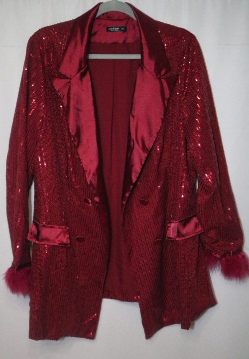 Turn every entrance into a grand arrival with this eye-catching red sequin blazer! This stunning piece features sparkling sequins, smooth satin lapels, and luxe faux fur cuffs for a look that’s pure Hollywood glamour. Perfect for special events, stage performances, holiday parties, or whenever you feel like stealing the spotlight.