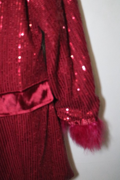 Color: Rich ruby red with sequins & satin trim