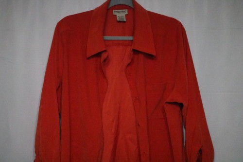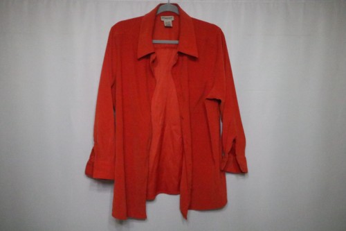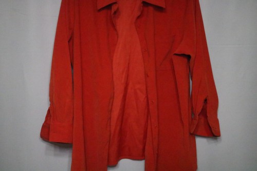 Add a bold pop of color to your wardrobe with this vintage burnt orange button-up shirt. Featuring a timeless collared design, long sleeves with button cuffs, and a relaxed fit, this shirt is versatile enough to be worn casual, business-casual, or even layered for a retro statement look.